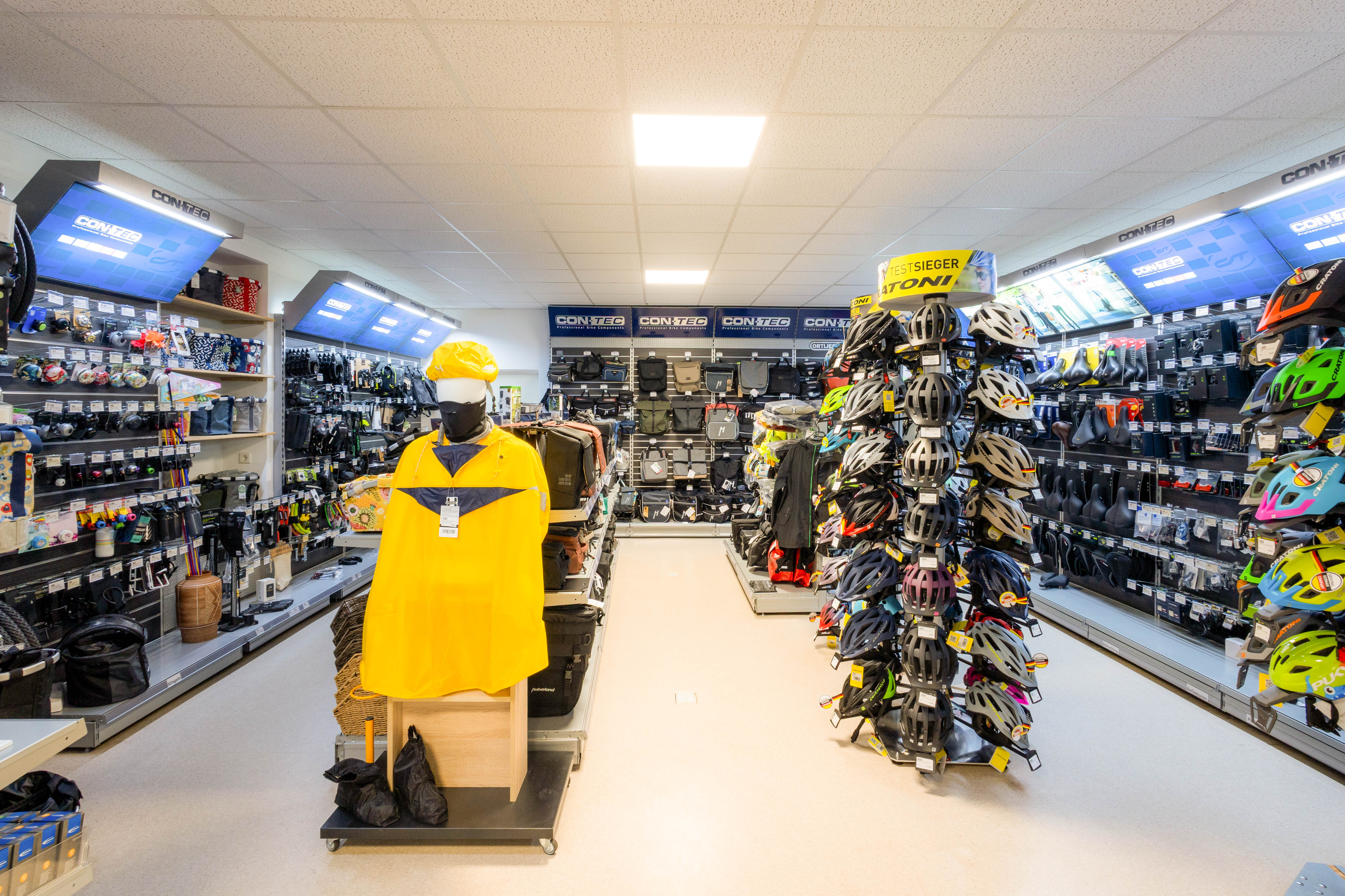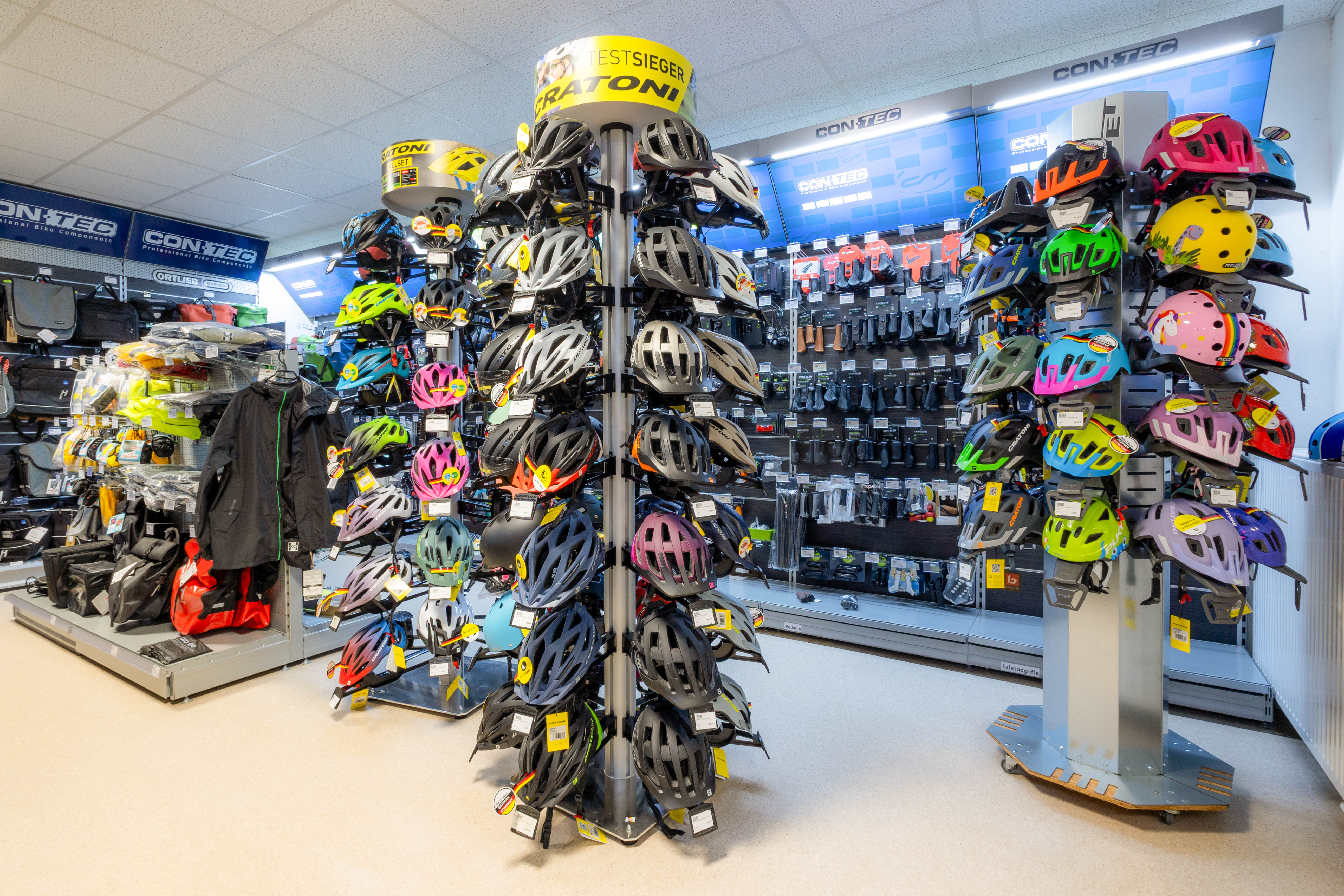 Individuelles Zubehör gehört zum Angebot: von Helmen und Schlössern bis hin zu praktischen Gepäcklösungen – alles, was das Radfahren komfortabler und sicherer macht. Auch eine begrenzte Auswahl an klassischen Fahrrädern für Groß und Klein befindet sich im Sortiment.
