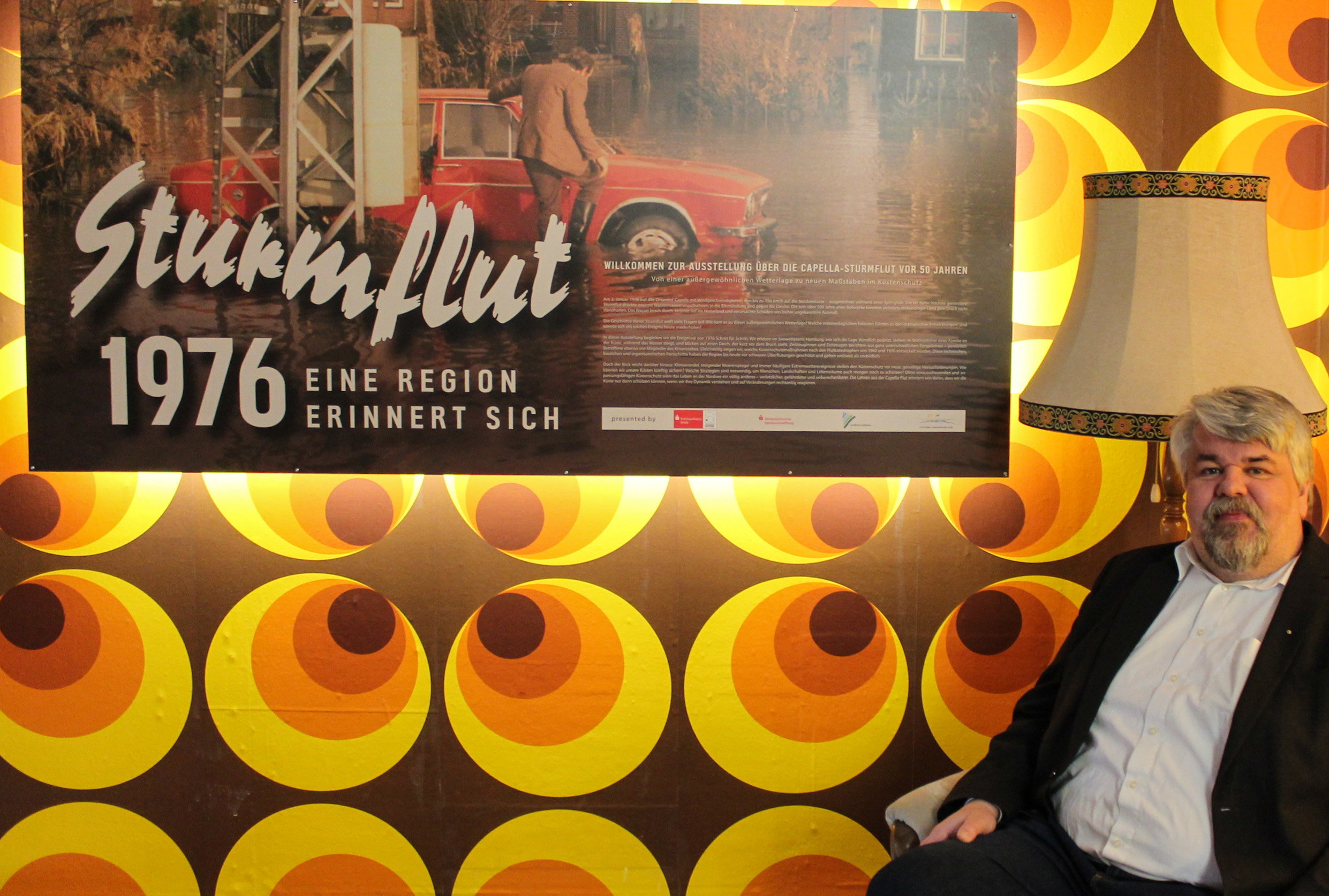 Mit dem Betreten der Sonderausstellungshalle werden die Gäste in die 1970er Jahre zurückversetzt – von der passenden Tapete bis zum orangenen Telefon mit Wählscheibe. Wetterkarte der Tagesschau. Es geht vom Seewetteramt Hamburg, wo die Prognosen stündlich dramatischer werden, in das Wohnzimmer eines Hauses an der Küste, wo sich die Bewohner auf die Flut vorbereiten bis in das Lagezentrum des Krisenstabes und an den Deich, der zu brechen droht. Anhand von Originalaufnahmen, Erinnerungen und natürlich von Exponaten aus der damaligen Zeit berichten Zeitzeugen über die Bewältigung einer Katastrophe ganz ohne Handys, Navigationsgeräte und Internet – heute insbesondere für die jungen Gäste wahrscheinlich unvorstellbar. Doch auch in der heutigen Zeit bleibt die Herausforderung Küstenschutz bestehen. Die Zeitreise endet daher nicht mit der Schadensbewältigung und der Reparatur der Deiche, sondern mit einem Blick in die Zukunft, wo der Klimawandel und der damit verbundene Meeresspiegelanstieg die Bewohner der Küstengebiete vor ganz neue Herausforderungen stellen werden.